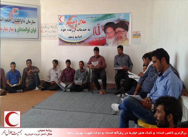 جلسه ای جهت برگزاری آموزشهای امدادی جمعیت هلال احمر ویژه ی دبیران کانون ها ، داوطلبین و امدادگران شهرستان زاوه با حضور ریاست جمعیت هلال احمر شهرستان تربت حیدریه و زاوه در محل پایگاه امداد و نجات شهید بهروز زاوه با هدف تبیین و توجیه این طرح برگزار گردید