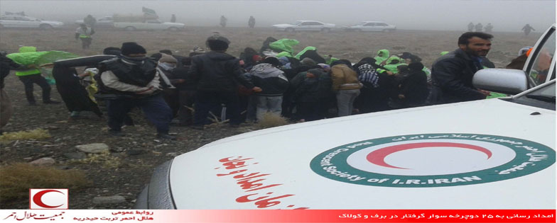 امداد رسانی به 25 دوچرخه سوار گرفتار در برف و کولاک