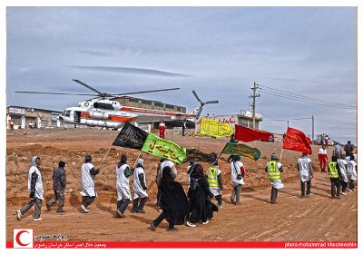جمعيت هلال احمر شهرستان تربت جام بابرپایی پنج ایستگاه سیار و تعدادبیست و پنج نفر نیرو به زائرين پياده علي بن موسي الرضا (ع) خدمت رساني مي كنند .