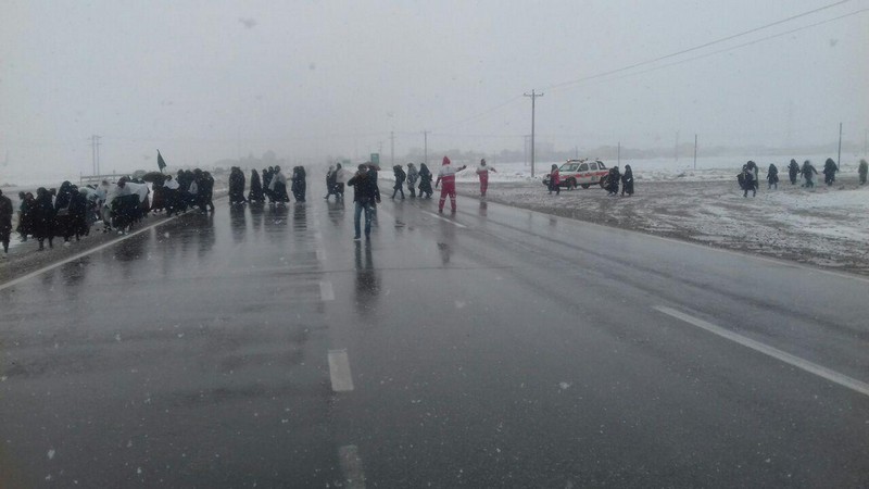 بارش برف در محور مواصلاتي تربت جام -فريمان زائرين پياده حرم رضوي را غافلگير كرد