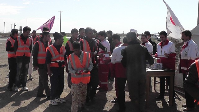 زائرین پیاده امام مهربانی ها مهمان پایگاه امداد و نجات جاده ای جمعیت هلال احمر خواف