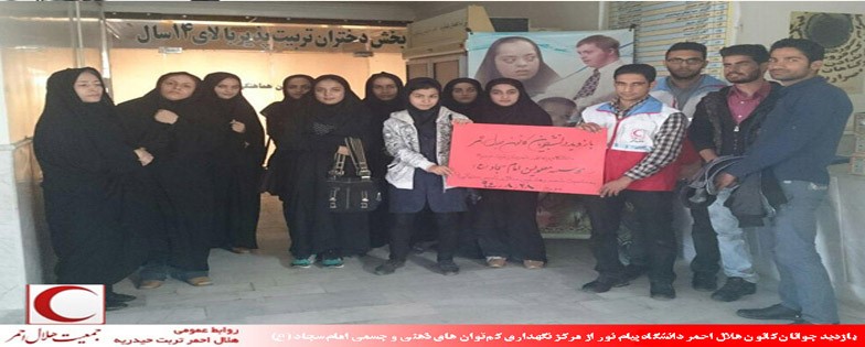 جوانان کانون هلال احمر دانشگاه پیام نور شهرستان تربت حیدریه از مرکز نگهداری کم توان های ذهنی و جسمی امام سجاد(ع) بازدید نمودند
