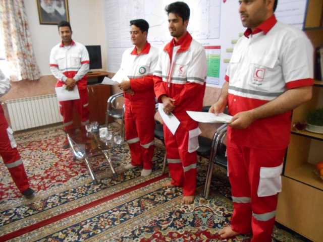 در ادامه عباس یوسفی سرپرست جمعیت هلال احمر شهرستان ضمن خوش آمدگویی و تشکر از حضور مسئولین درخصوص فعالیت های امدادی و حضور داوطلبانه جوانان نجاتگر در این پایگاه توضیحاتی ارائه نمود. در پایان بازدید عیدی استاندار محترم و لوح تقدیر معاونت محترم هماهنگی امور زائرین و جانشین ستاد اجرایی خدمات سفر استان توسط فرماندار محترم شهرستان به عوامل اعطاء گردید.
