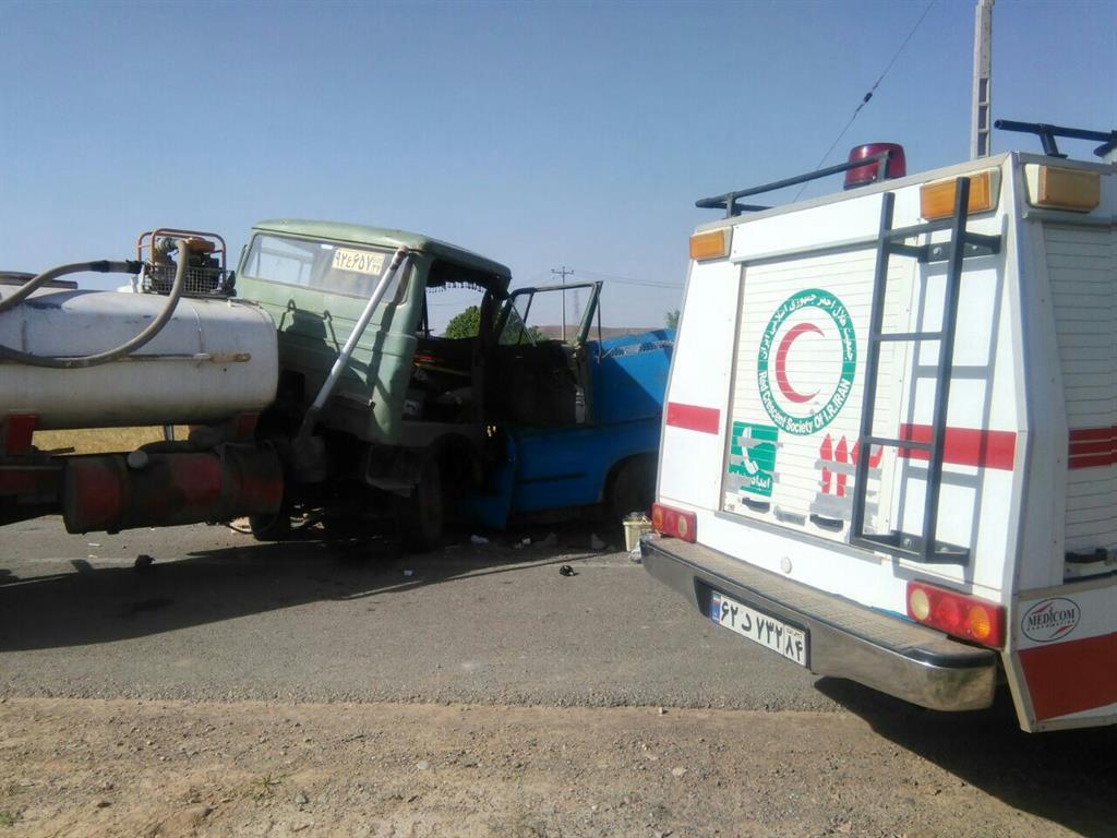 برخورد یک دستگاه خودرو نیسان با یک دستگاه کامیونت و اعزام دو تیم عملیاتی از پایگاه جاده ای ملک آباد جمعیت هلال احمر مشهد