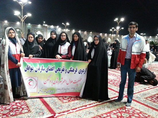 به گزرش روابط عمومی جمعیت هلال احمرشهرستان بردسکن،به مناسبت ماه مبارک رمضان و به منظور غنی سازی اوقات فراغت اعضا،اردوی فرهنگی-زیارتی جهت اعضای جوانان کانون بخش آزاد خواهران جمعیت هلال احمر شهرستان بردسکن،برگزار گردید.در شب احیای 19 ماه مبارک رمضان پس از حضور در مزار مطهر سید مرتضی کاشمر به حرم مطهر رضوی عزیمت کردند و پس از صرف افطار در مراسم احیا داری و قرآن به سر شرکت نمودند.