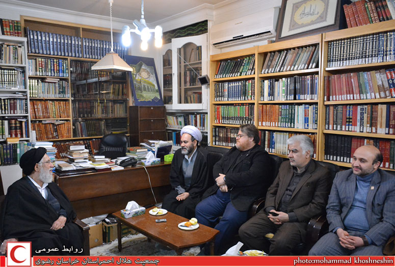 عکس خبری/دیدار مدیر عامل و مسئول دفتر نمایندگی ولی فقیه در جمعیت هلال احمرخراسان رضوی وجمعی از مدیران ومعاونین با آیت الله سیدان در دفتر معظم له