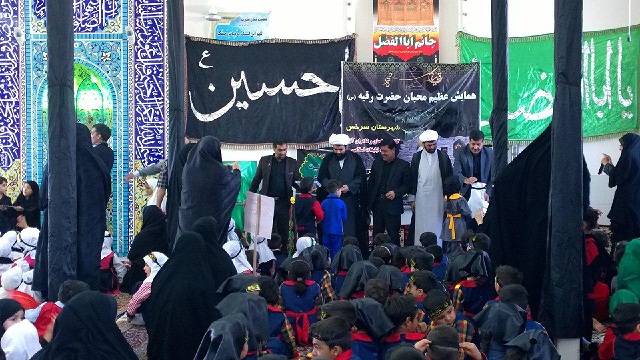 برگزاری مراسم عزاداری دهه اول محرم شهادت حضرت رقیه(س) حضرت رسول اکرم (ص) و امام حسن مجتبی(ع) و امام رضا (ع) پخش نذری در مهد کودک ها