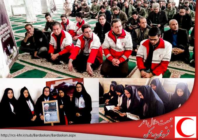 جمعی از پرسنل و اعضای جمعیت هلال احمرشهرستان بردسکن در مراسم بزرگداشت ترحیم یار دیرین امام و انقلاب حضرت آیت الله هاشمی رفسنجانی که در محل مسجد جامع شهرستان برگزار شد، شرکت کردند.