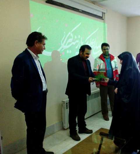 اعضای جمعیت هلال احمر شهرستان بردسکن در پایان با اهدای گل  و لوح سپاس به پرستاران از زحمات آنان قدردانی کردند.