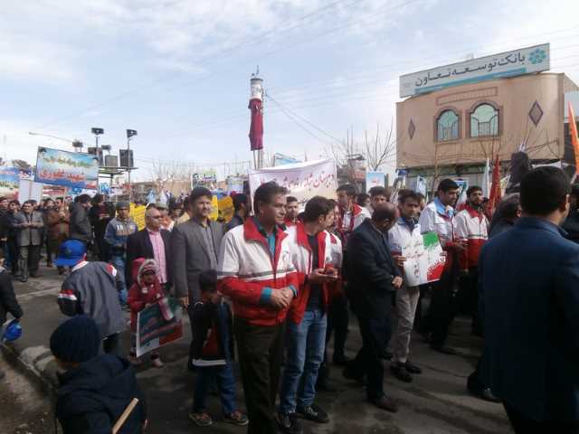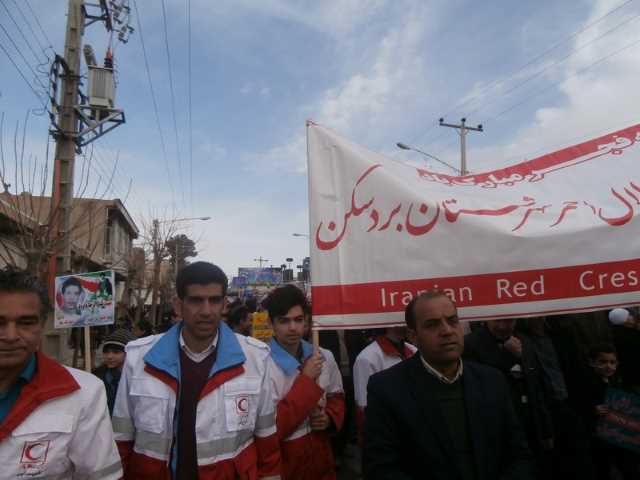 به گزارش روابط عمومی جمعیت هلال احمر شهستان بردسکن، احمد رضاپور رئیس جمعیت هلال احمر شهرستان بردسکن، با اعلام این خبر گفت: در این مراسم، اعضا جمعیت اعم از جوانان، امدادگران و داوطلبان ضمن پوشش امدادی در سراسر مسیر، دوشادوش مردم مسلمان و انقلابی شهرستان، به راهپیمایی پرداخته و استکبارجهانی را محکوم کردند.