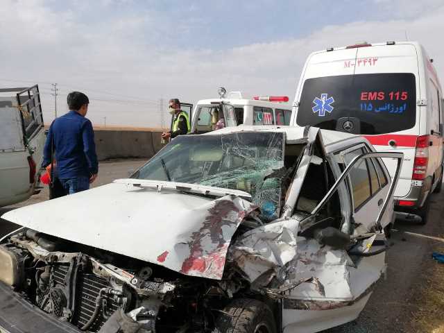 برخورد يك دستگاه خودروي سواري پرايد با آمبولانس :