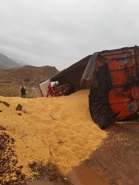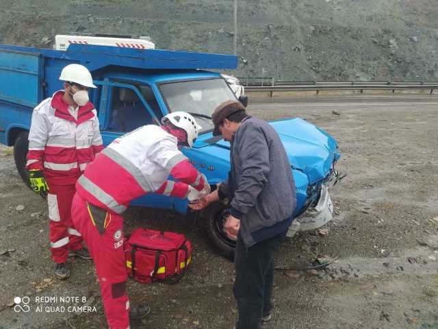 او افزود :عوامل مستقر با خودرو نجات سریعا به محل اعزام شدند که پس از رسیدن و ارزیابی مشخص شد که خوشبختانه حال عمومی دو سرنشین کامیون مطلوب است وباتوجه به برودت هوا اقلام زیستی بین حادثه دیدگان توزیع شد.