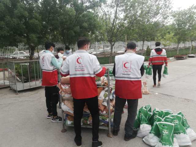 اهدای ١٠٠٠ بسته مواد مواد غذایی توسط جمعیت هلال احمر قوچان به نیازمندان
