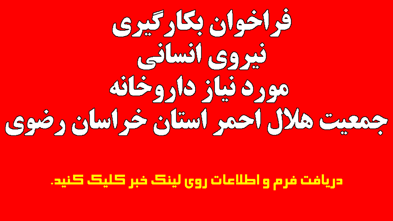 فراخوان بکارگیری نیروی انسانی مورد نیاز داروخانه جمعیت هلال احمر استان خراسان رضوی